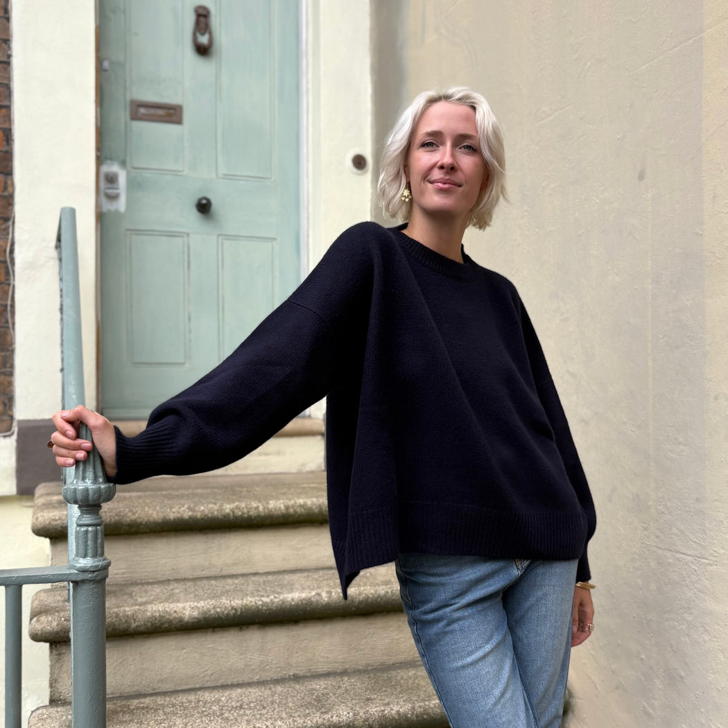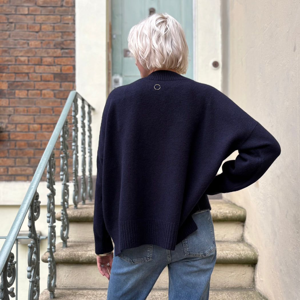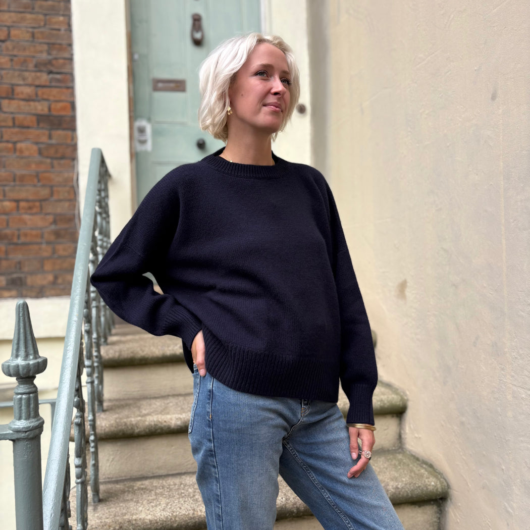 With a stepped trim detailing and a generous oversized fit. Knitted in a chunky jersey stitch, this item comes in one size, is versatile, and can comfortably accommodate sizes ranging from small to large.