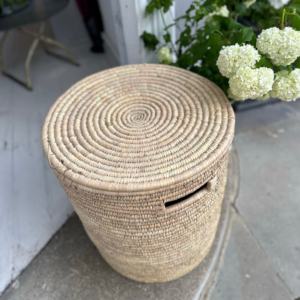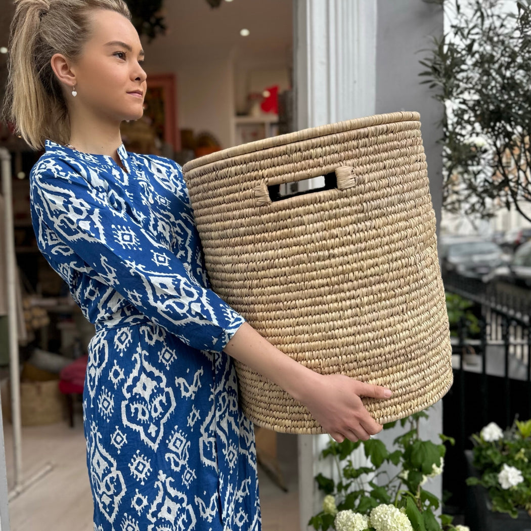 The palm baskets are made from, as the name clearifys, palm leaves. The production of these baskets creates important jobs for women in the countryside of Bangladesh.