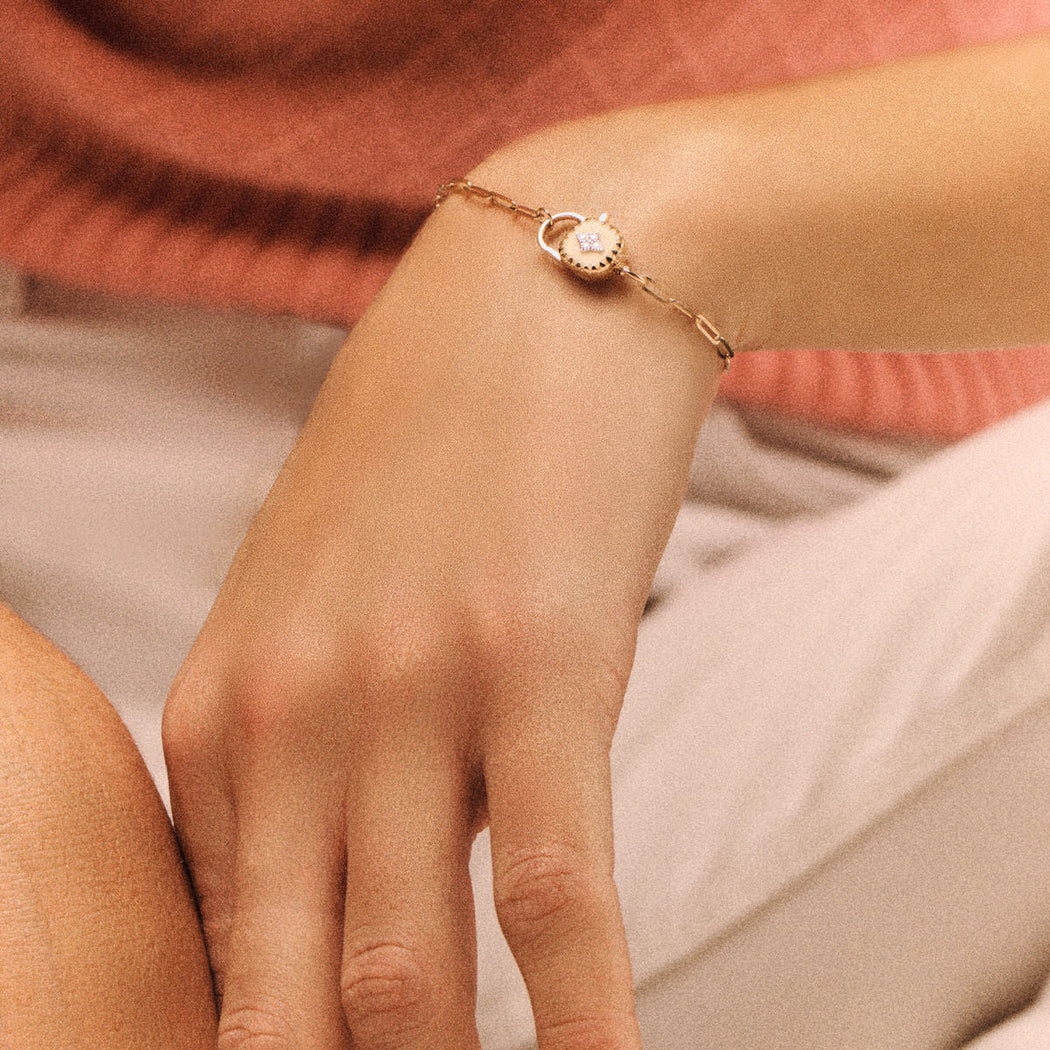 This design reimagines the iconic silhouette of the Pierrot collection, blending the vintage charm of the piece with a more contemporary chain. The clasp, transformed into a minimalist padlock, serves as both a functional detail and a symbol of redefined connections.