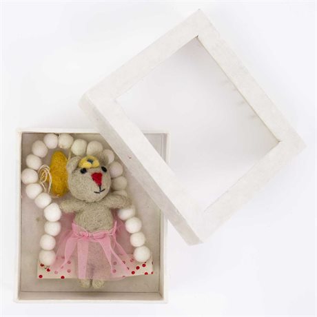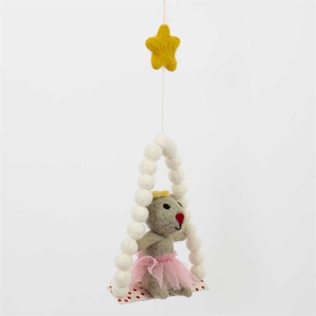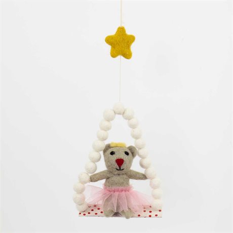 A sweet hand felted baby mobile for a new born, nursery or playroom. A felted ballerina mouse dangling from a swing.