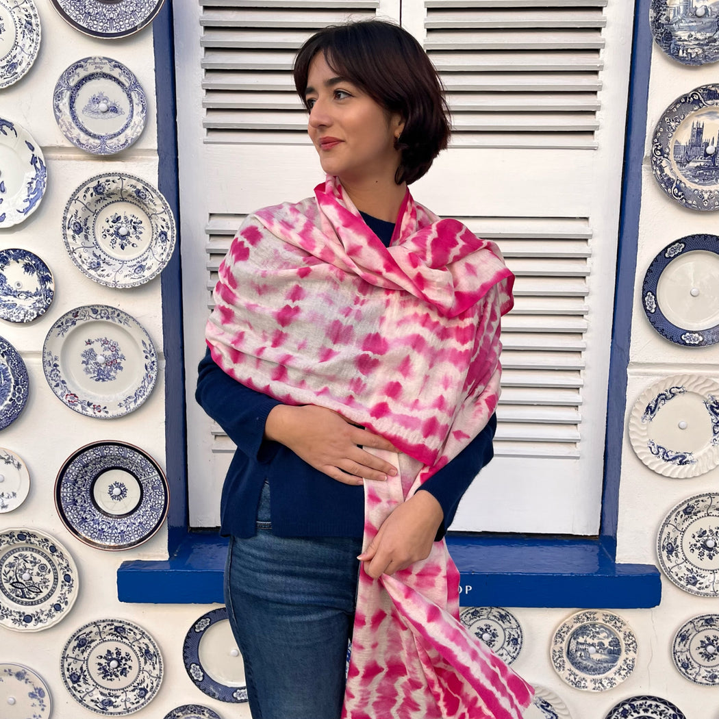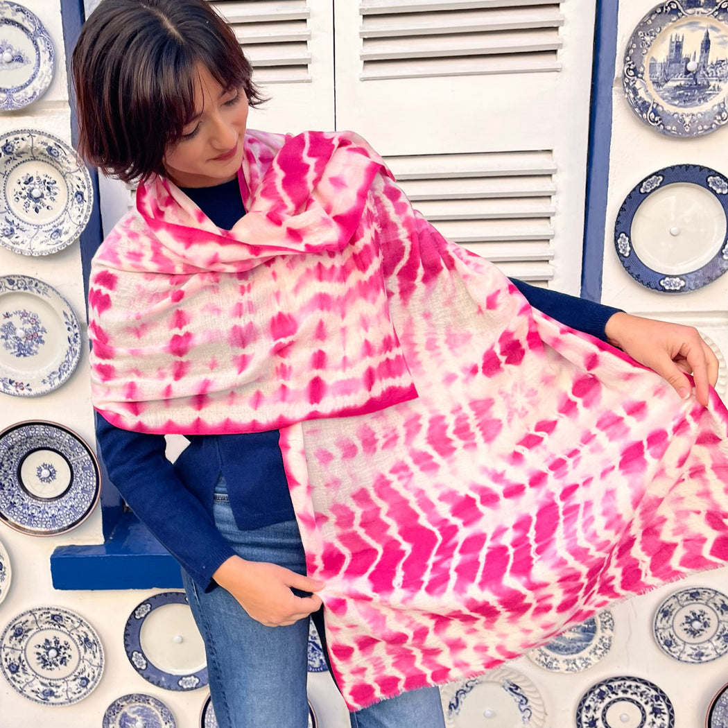 Somerville scarves are soft and cheerful. This tie dye design is very versatile, with enough length to style as a Winter scarf or Spring pashmina. One of our most popular presents!