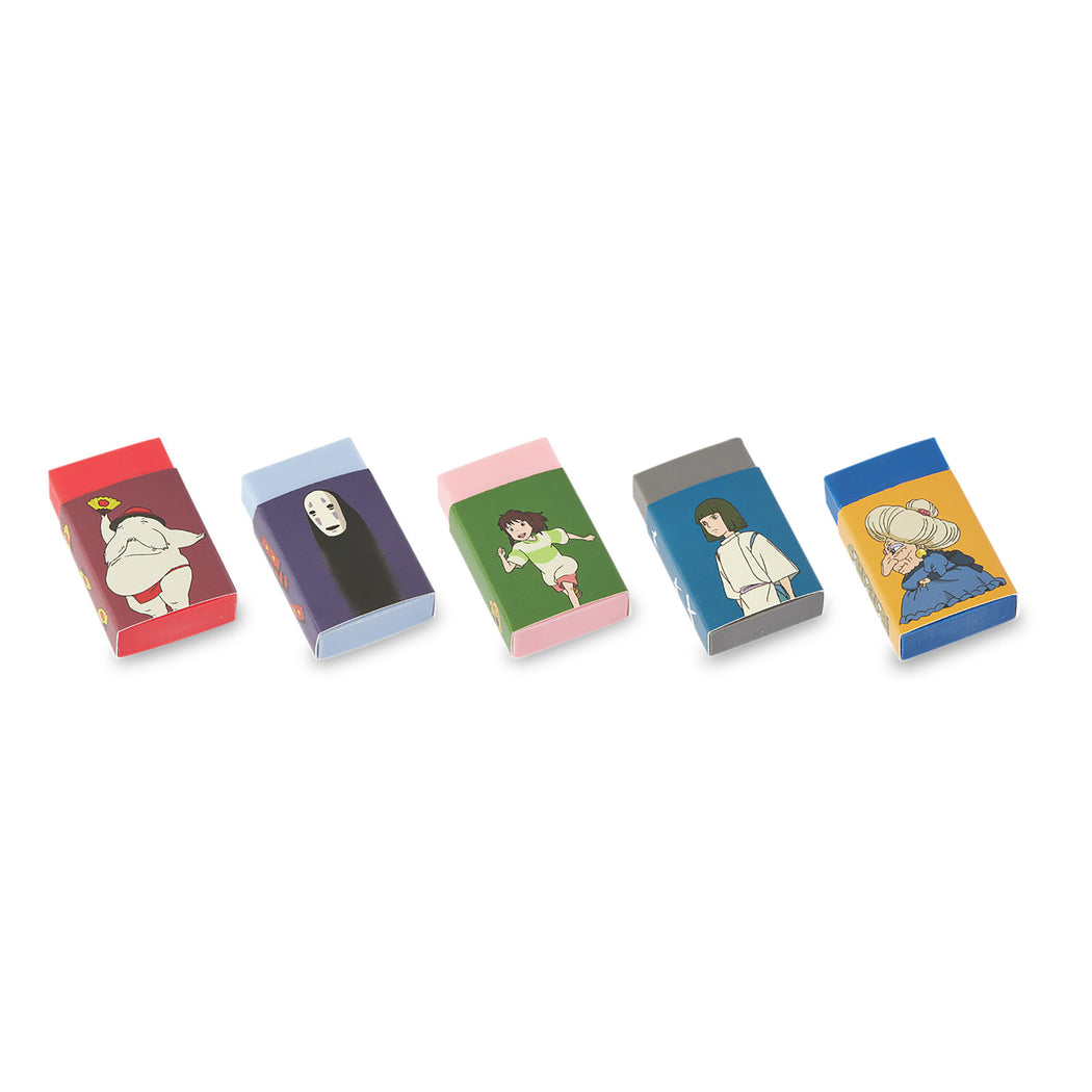 5 erasers with full-color illustrated sleeves, packaged in a sweet die-cut box.