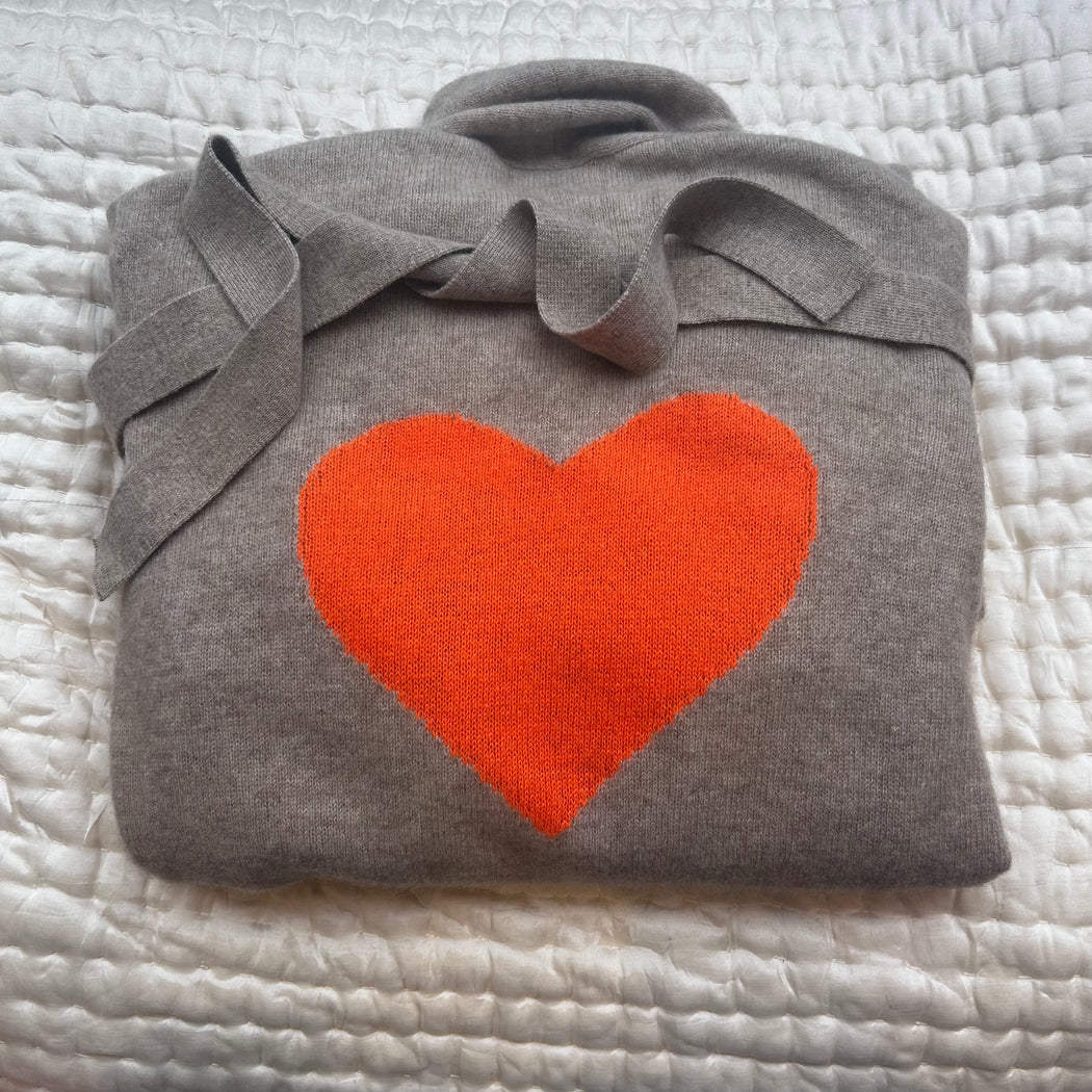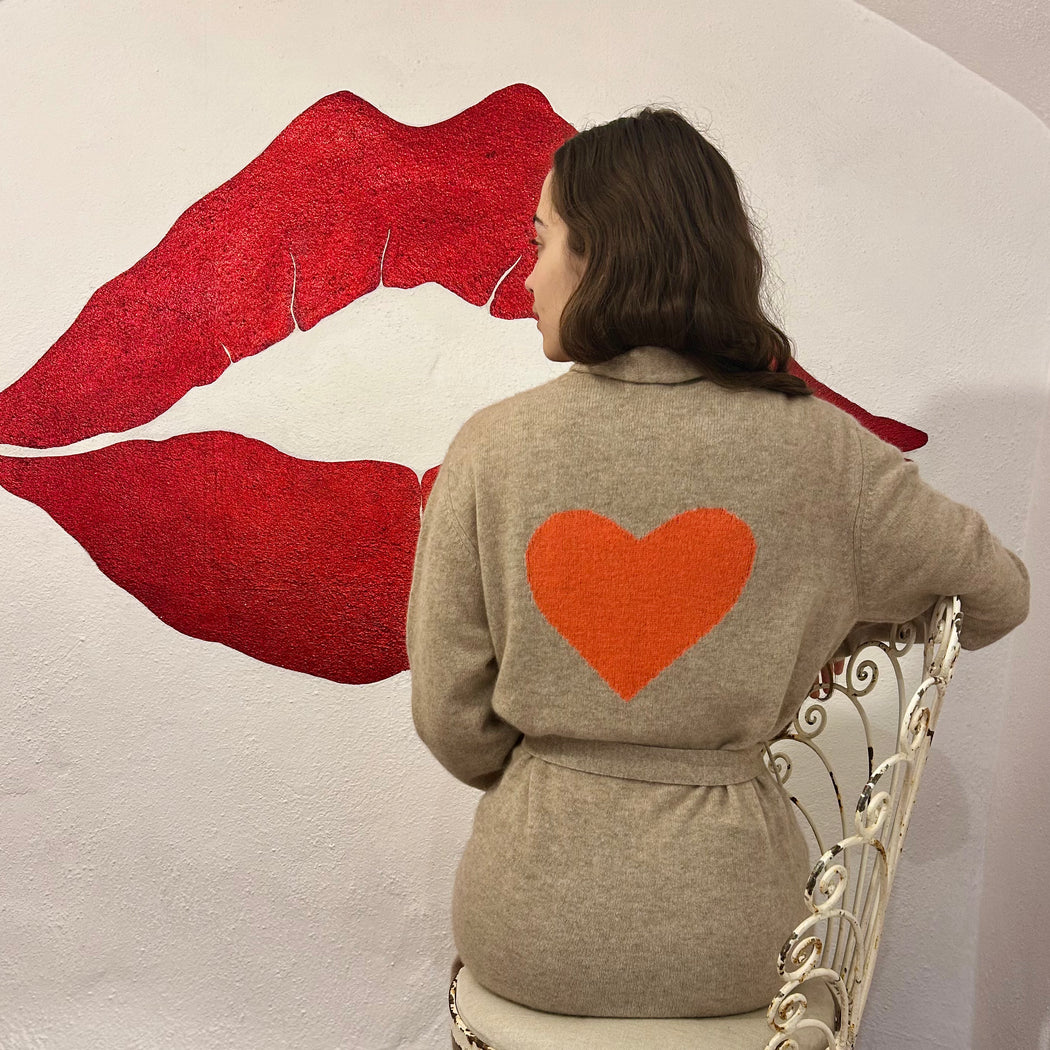 The Cross Cashmere Neon Orange Heart Dressing Gown in Organic Brown