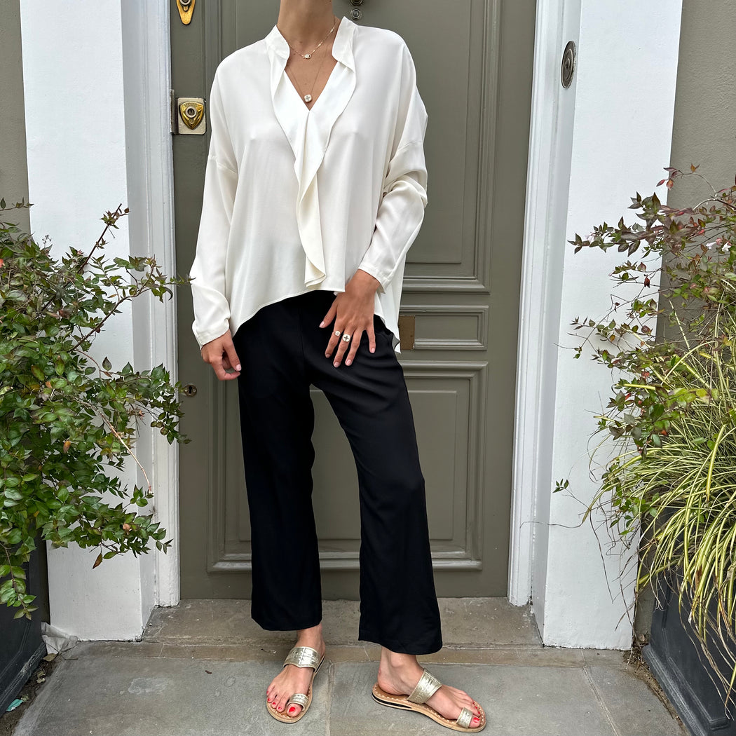 A fabulous smart trouser for the summer months, crafted in a fluid silk you will be wearing these all season long!