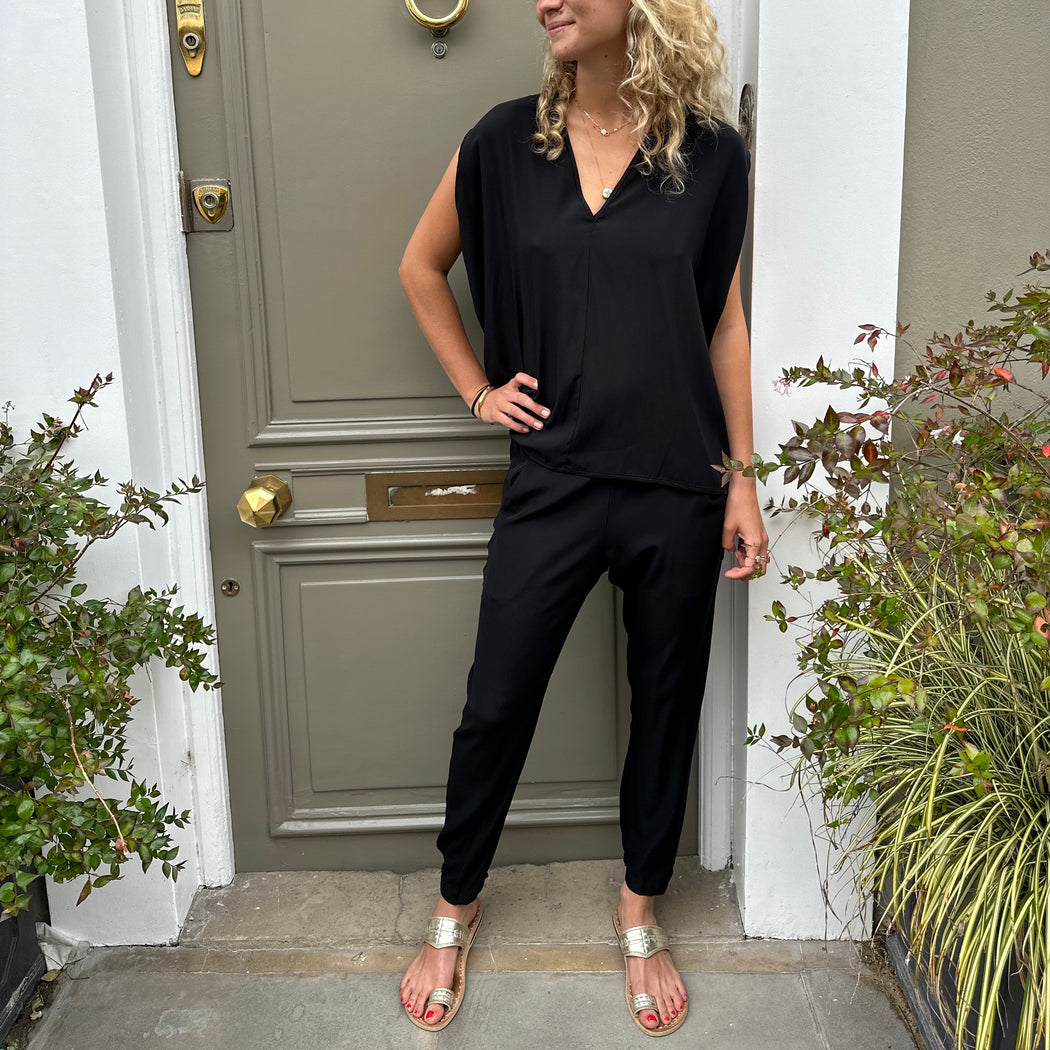 Zero Gabi Black Silk Charmeuse Trousers