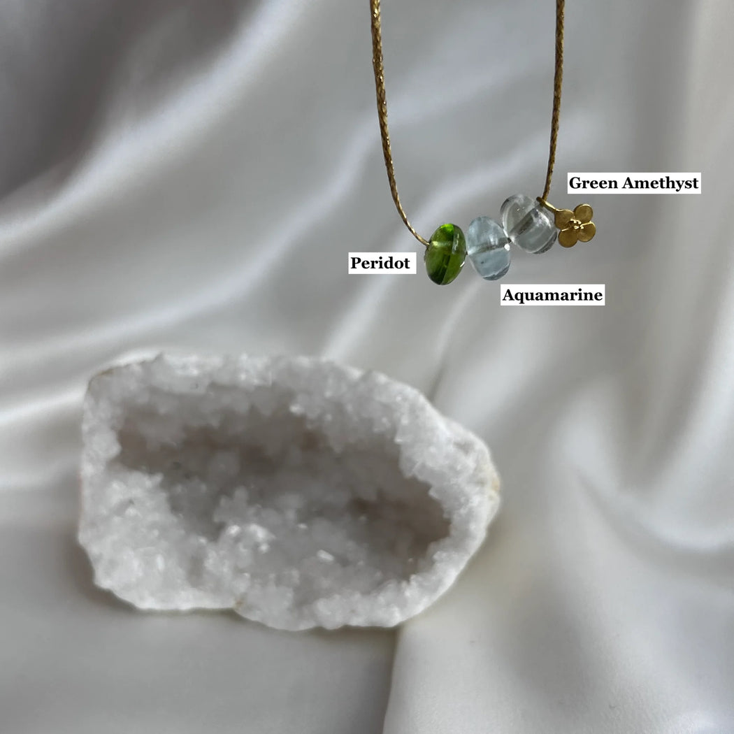 Mixing green amethyst, aquamarine and peridot.