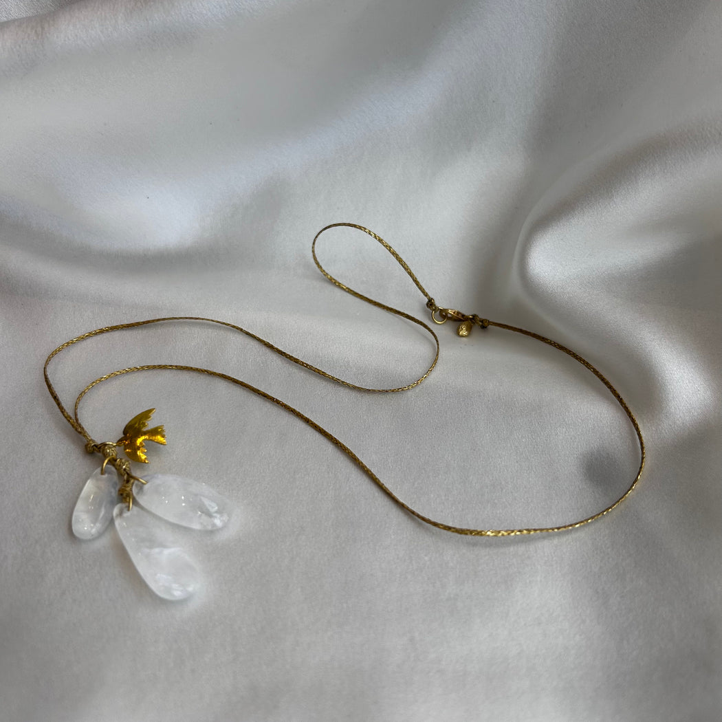 Pippa Small Koh I Noor Triple Rainbow Moonstone and Gold Bird on Cord Necklace