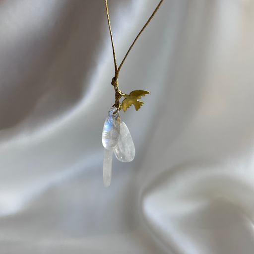 Pippa Small Koh I Noor Triple Rainbow Moonstone and Gold Bird on Cord Necklace
