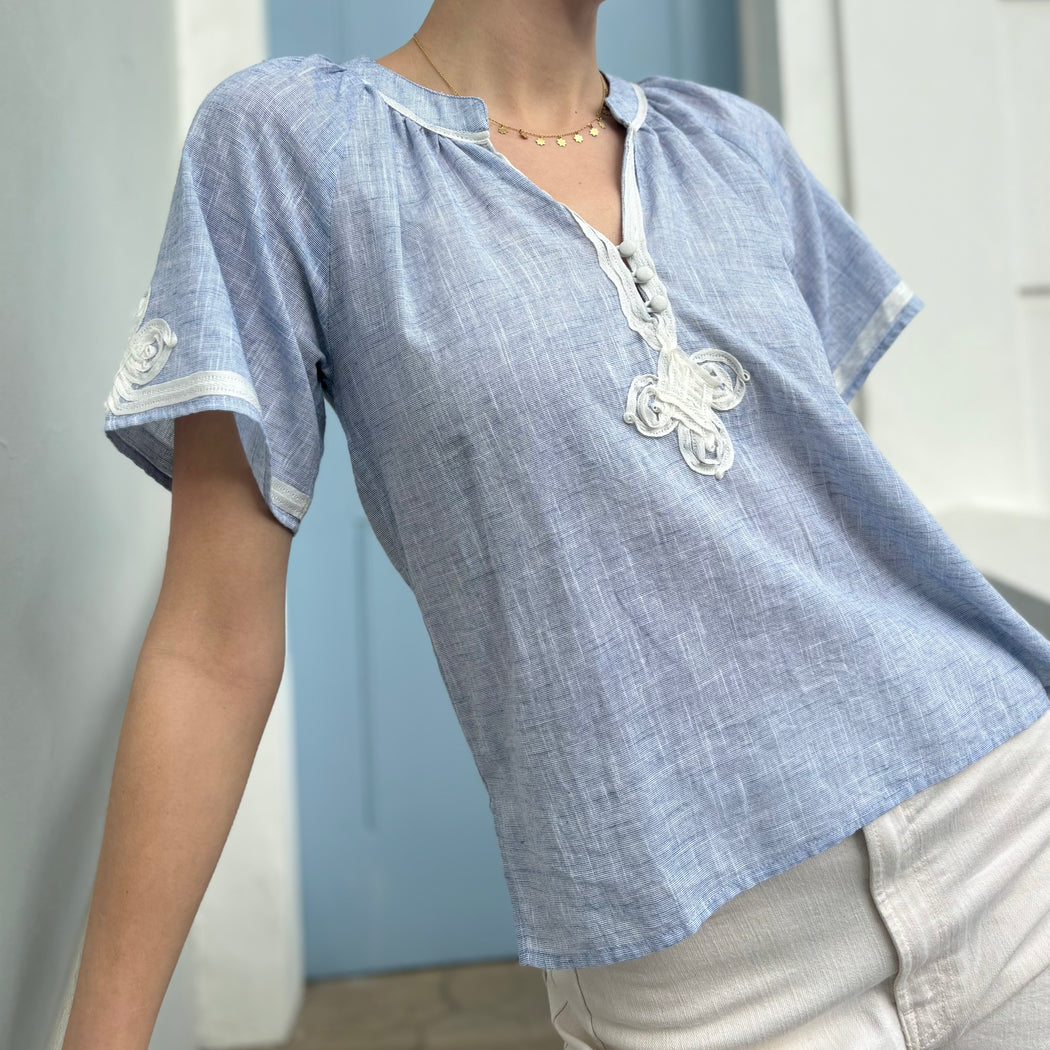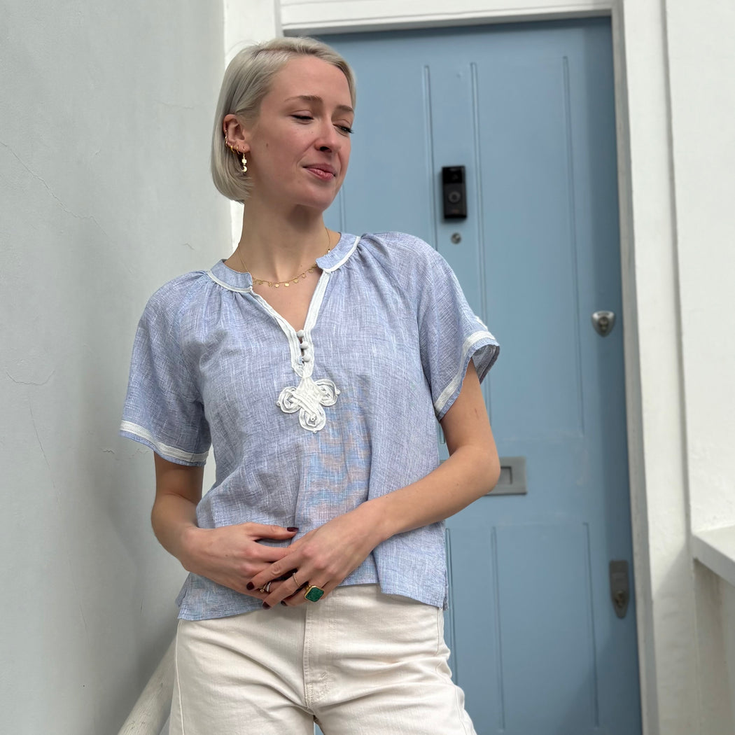 Rose & Rose Foxglove Blue Short Sleeve Top