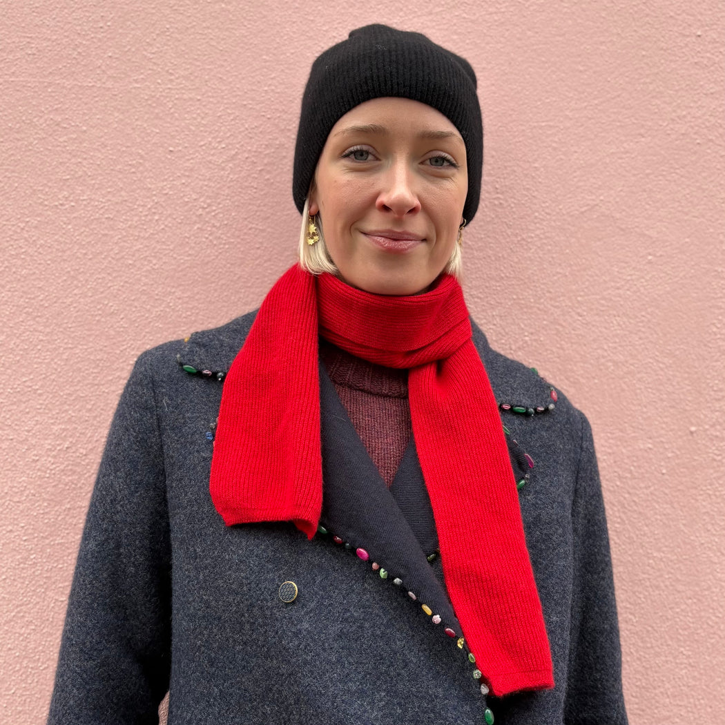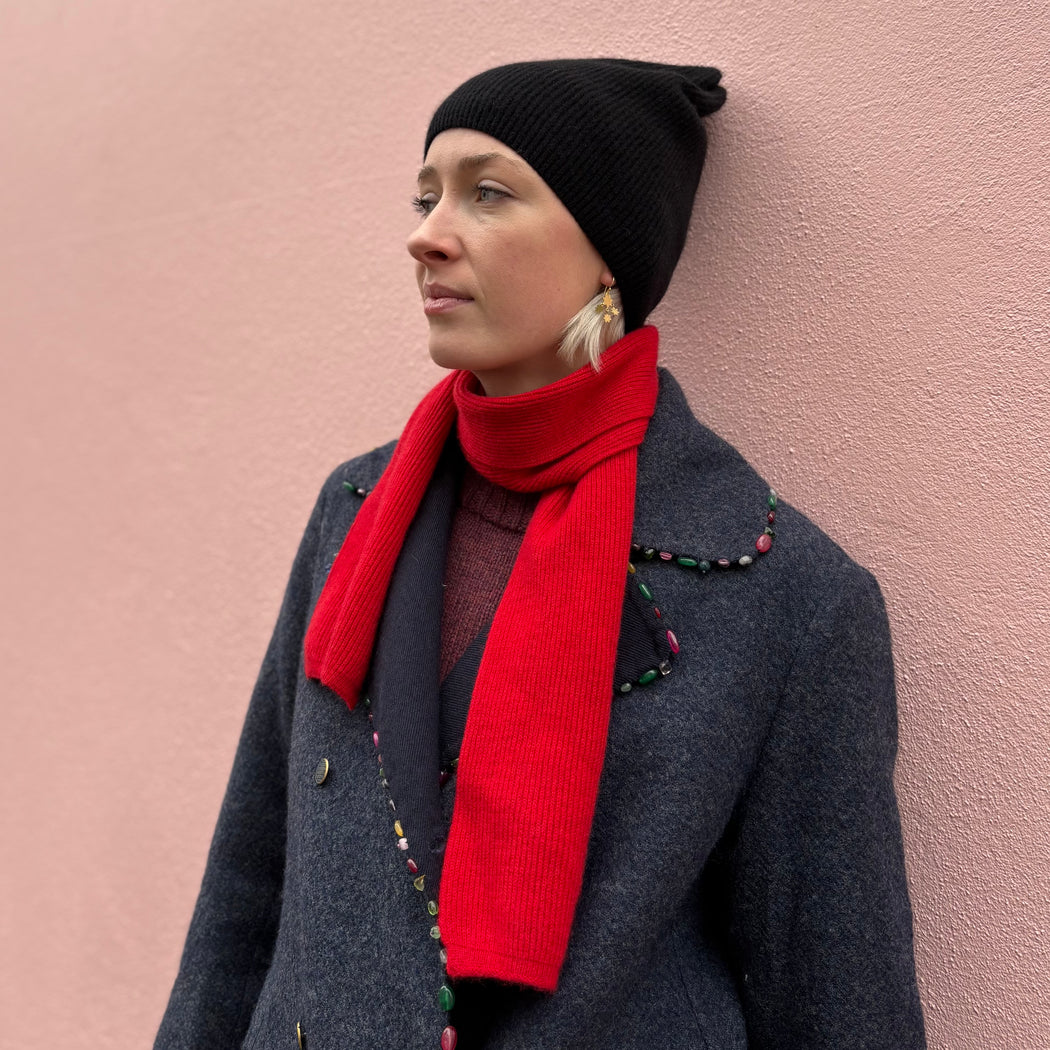 Knitted in their fine gauge machine in a full luxe fisherman's rib stitch, this elegantly simple super soft scarf is perfectly sized to fit under any jacket or coat with ease. Short enough to wear all day for that extra bit of warmth you won't want to take it off!