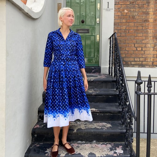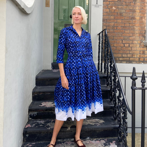 Samantha Sung Audrey Shibori Cobalt Blue Border Dress