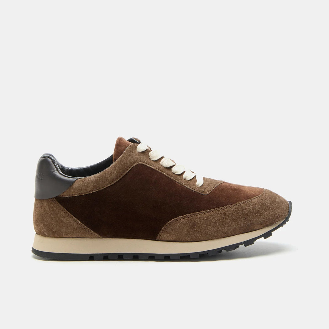 Slim Runner Sneaker, handcrafted in date brown velvet with suede and leather details. Cushioned insole and lining in goat skin, tread in smooth rubber. Lace-up fastening. Made in Italy.