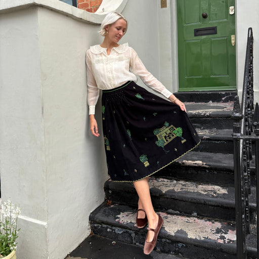 Thierry Colson Yulia Black Cord Embroidered Skirt