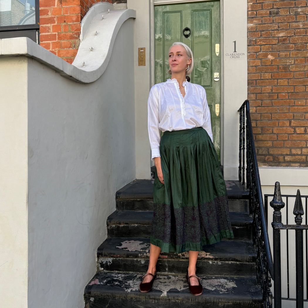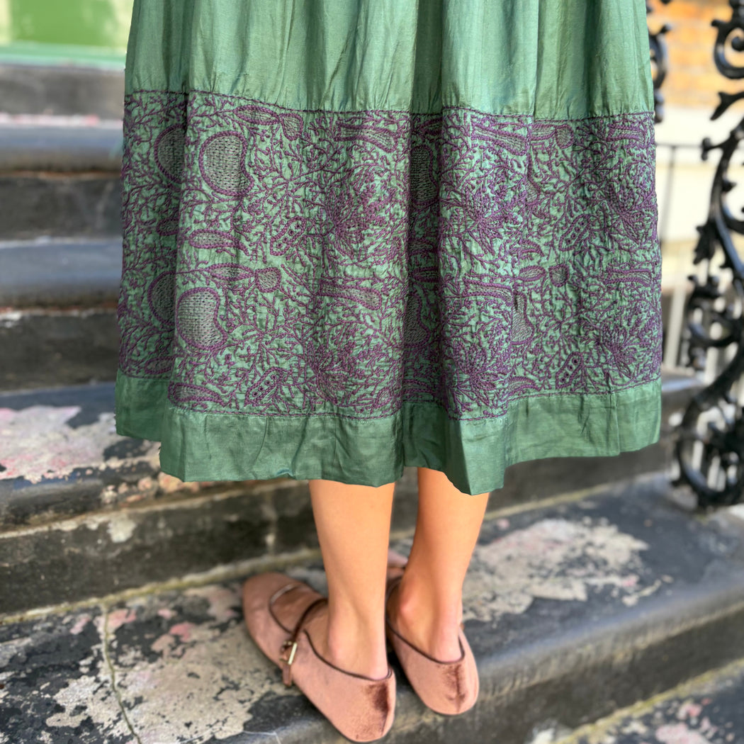 Injiri Green Silk with Purple Embroidery Skirt My cart