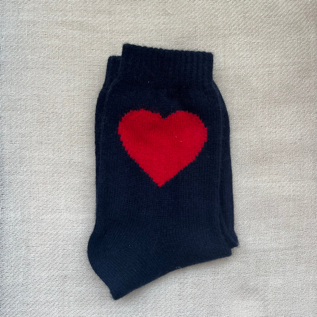 The Cross Cashmere Navy and Red Heart Bed-Socks