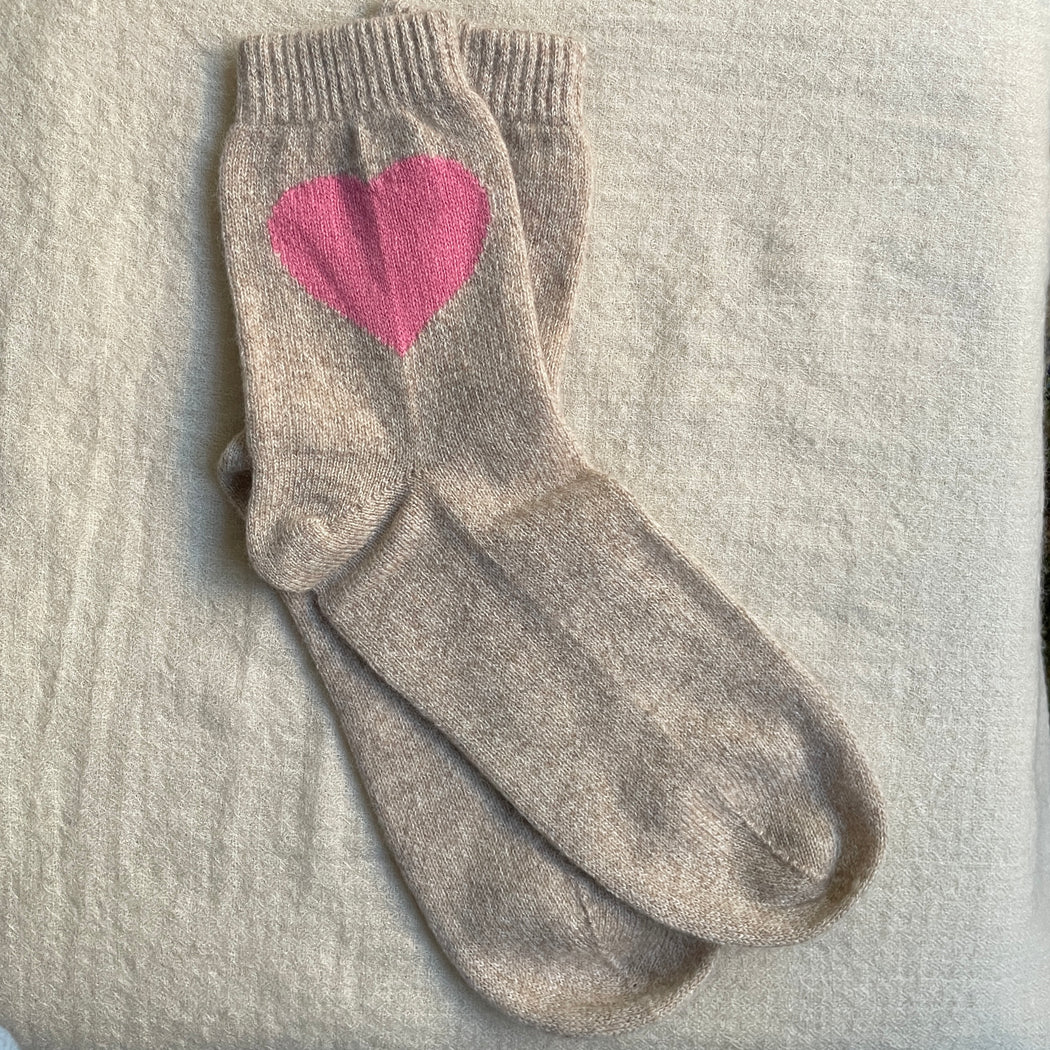 The Cross Cashmere Wheat and Cosmo Pink Heart Bed-Socks