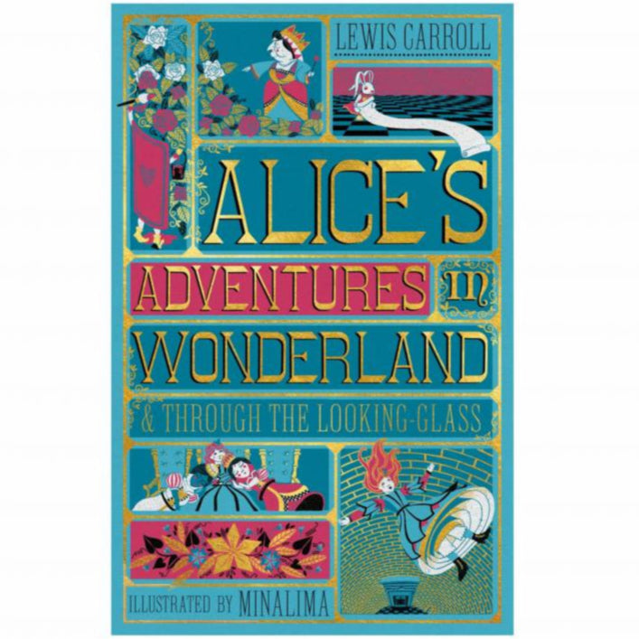 Lewis Carroll’s classic stories are reimagined in this deluxe illustrated gift edition from the award-winning design studio MinaLima. With stunning full colour artwork and several interactive features, including Alice with extendable legs and arms; rabbit’s house which opens to reveal a giant Alice; the Cheshire cat with a pull tab that removes the cat and leaves the cat’s grin; a flamingo croquet club that swings to hit the hedgehog; and a removable map of the Looking Glass world.