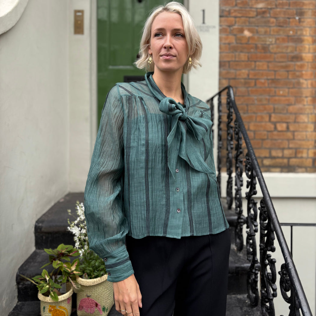 Thierry Colson Alba Teal Green Pussybow Blouse