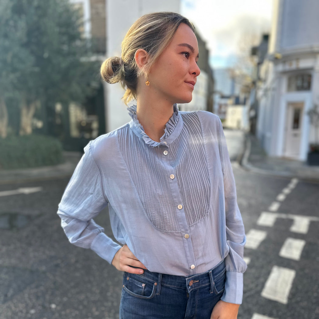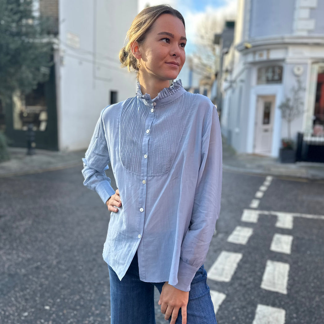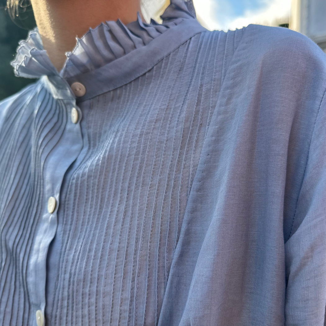 Thierry Colson Andrea Blue Pleated Shirt