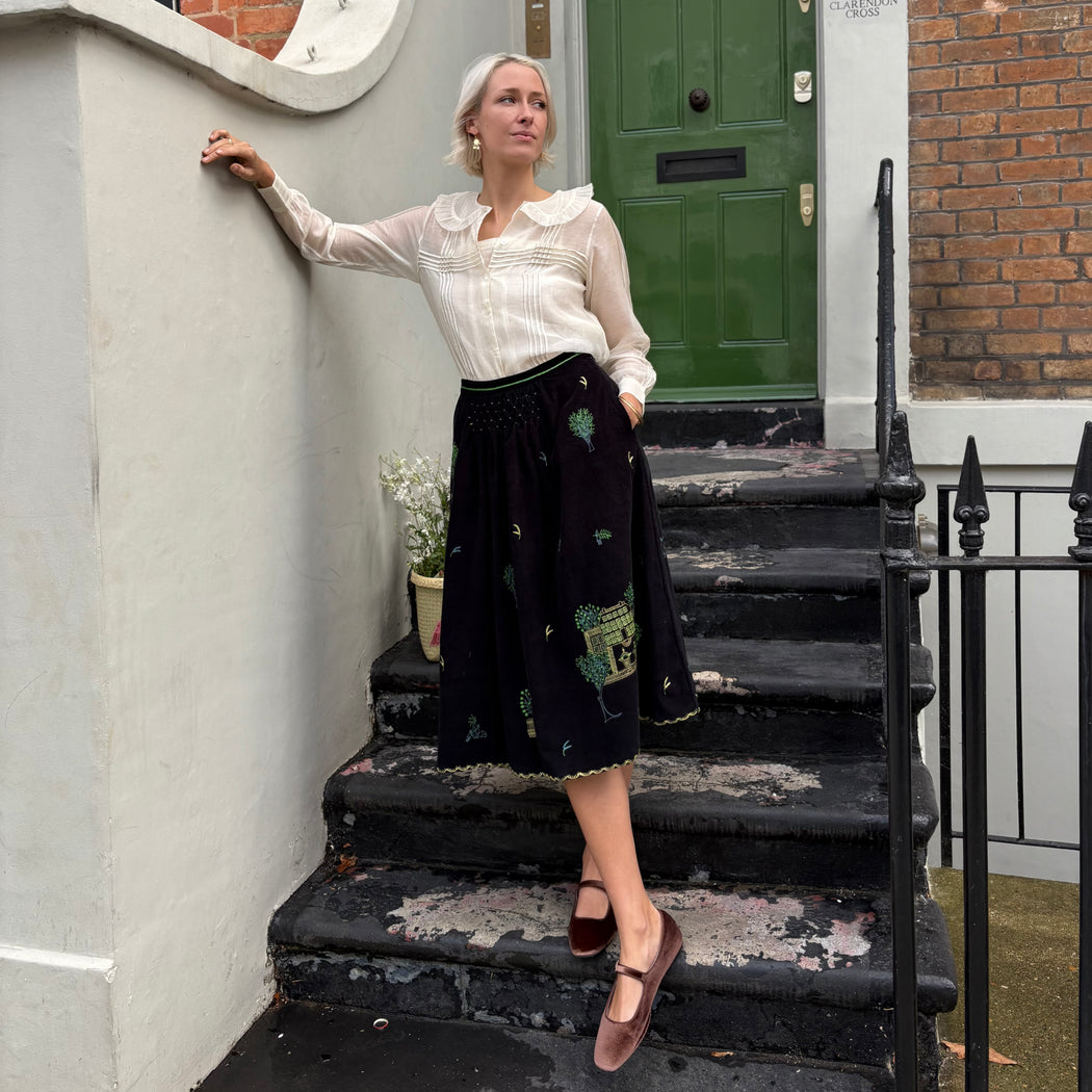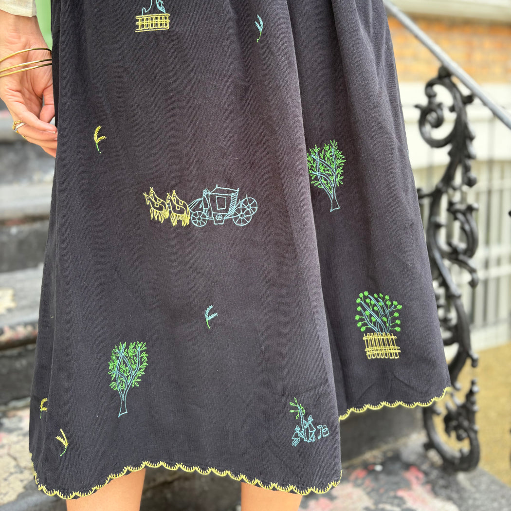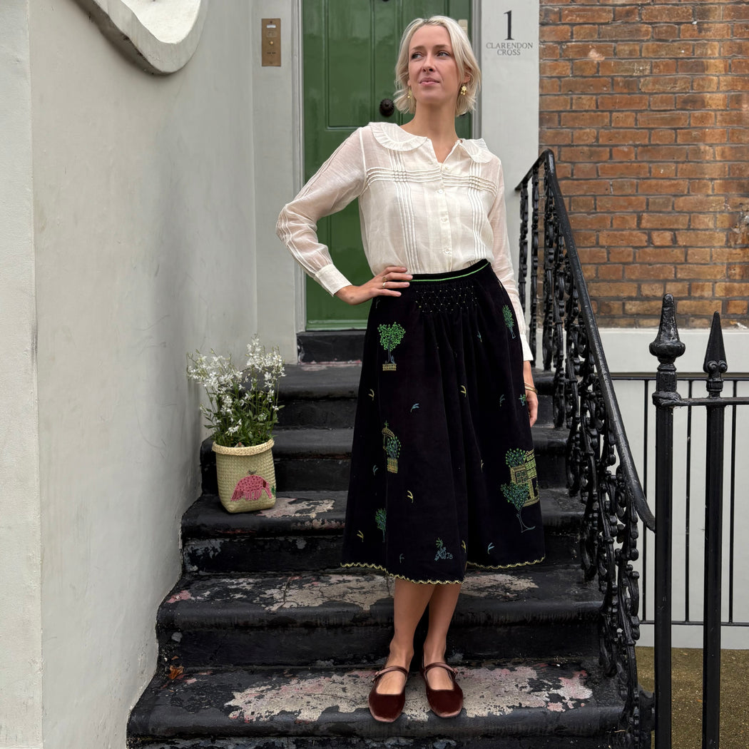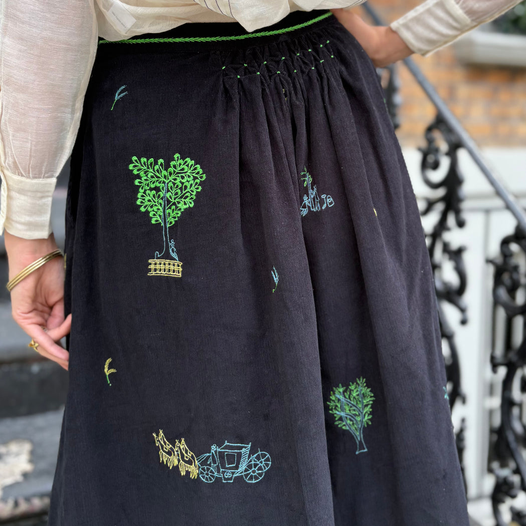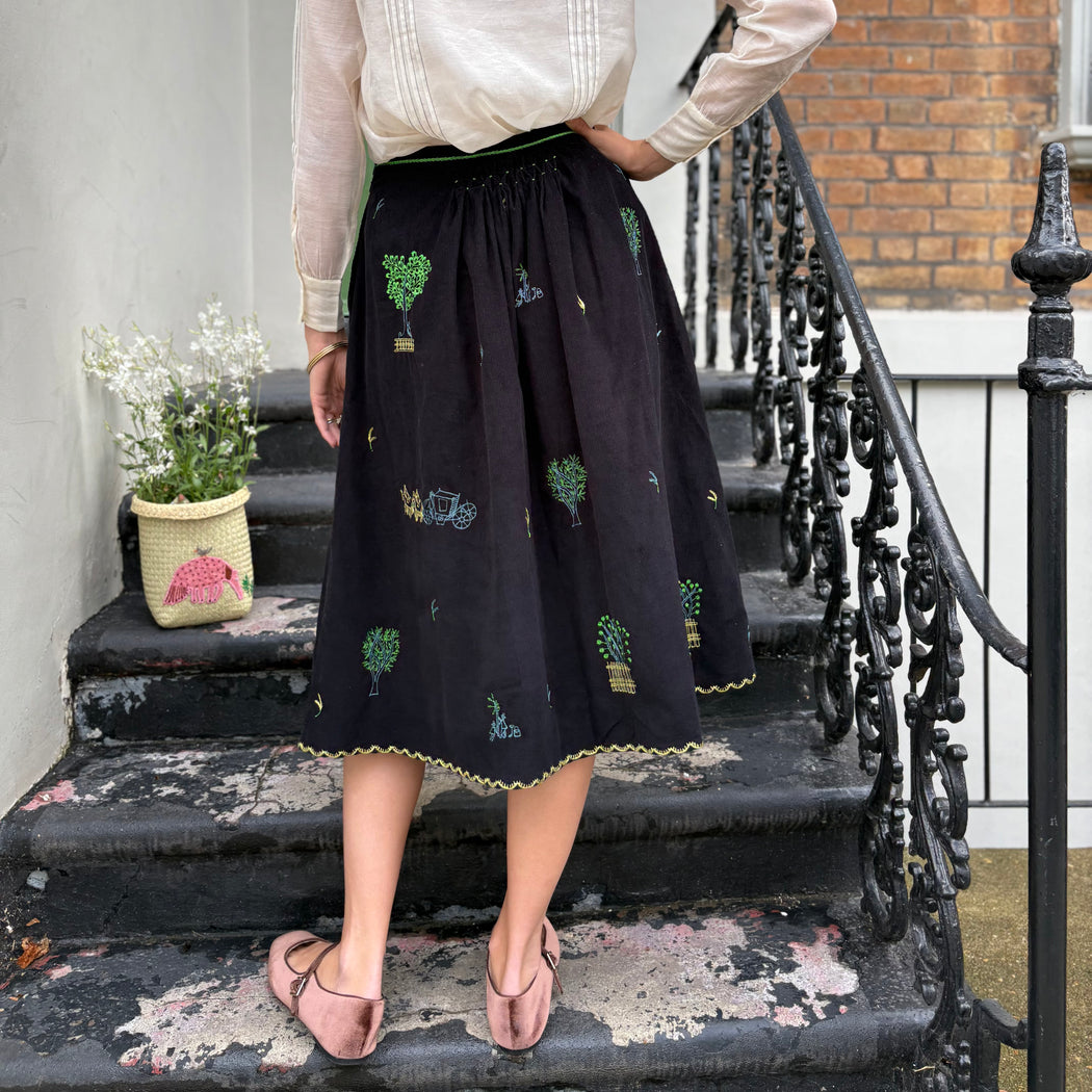 Thierry Colson Yulia Black Cord Embroidered Skirt