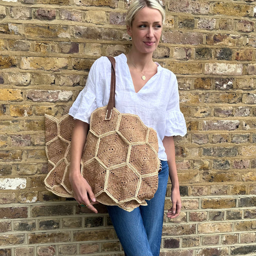 Tongasoa Artisanal Perla Tea Hexagon Large Raffia Bag