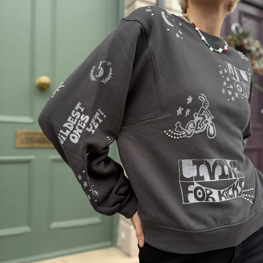 Mother Denim Faded Black Wild Ones Sweatshirt