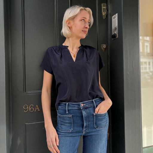 Pomandere Dark Navy Silk S/S Top