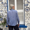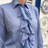 Diega Cianta Blue Cotton Ruffle Shirt