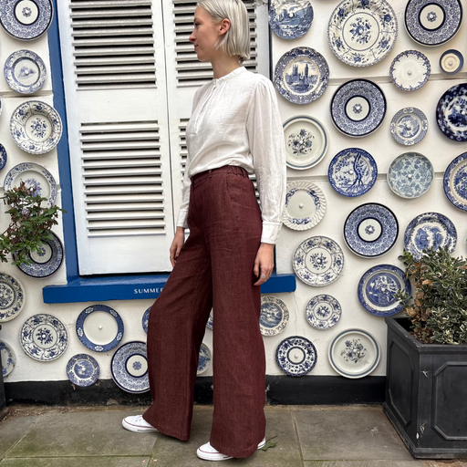 Pomandere Plum Elasticated Linen Trousers