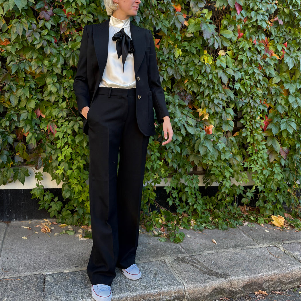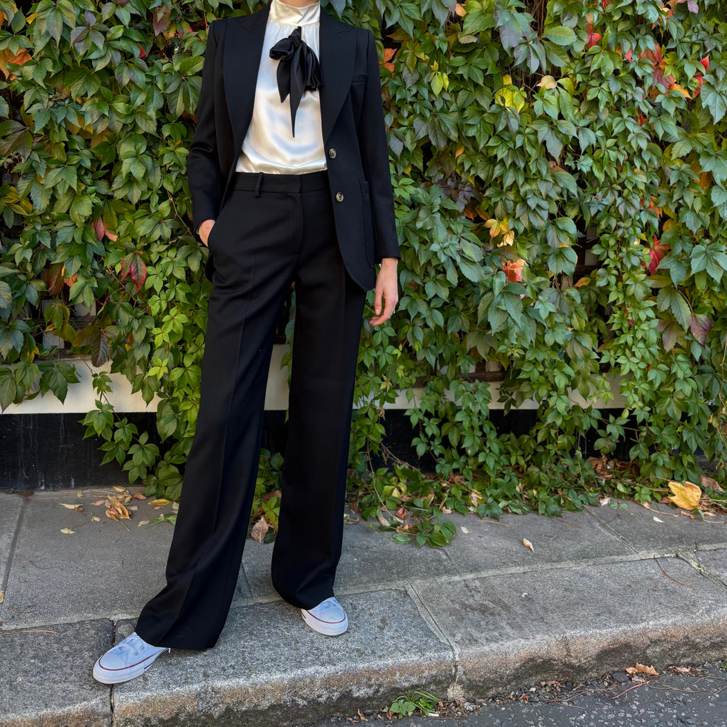 High rise British wool Cavalry Twill kick flare trouser homage David Bowie. Finished with side pockets.