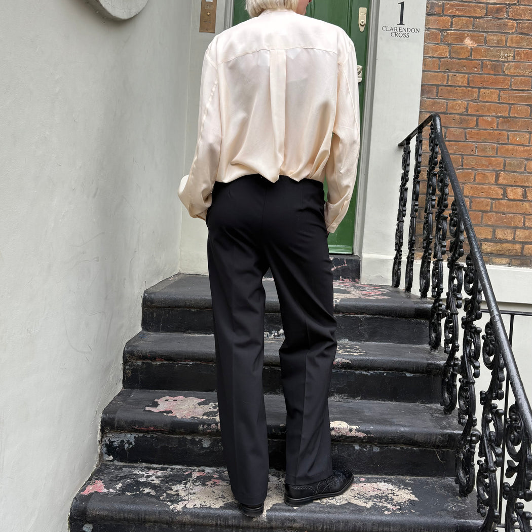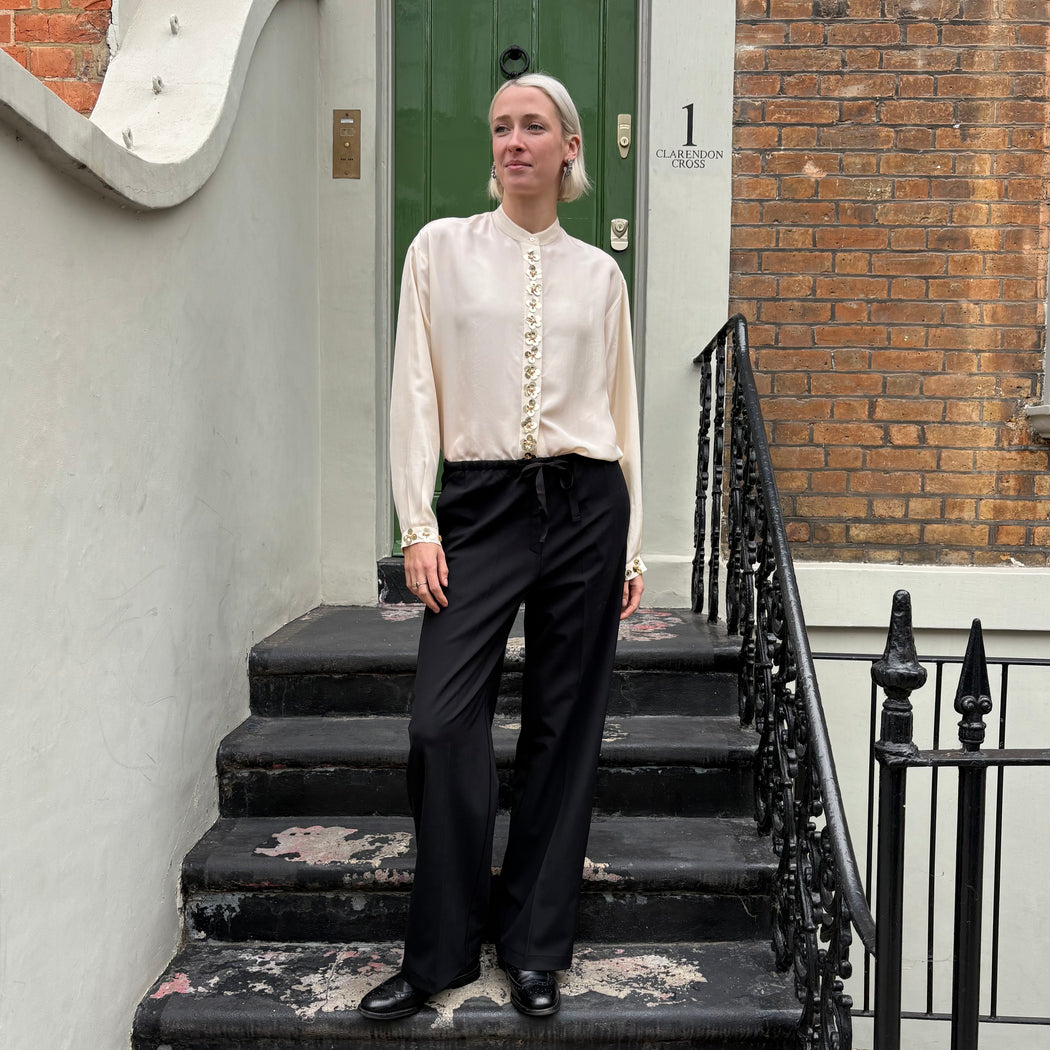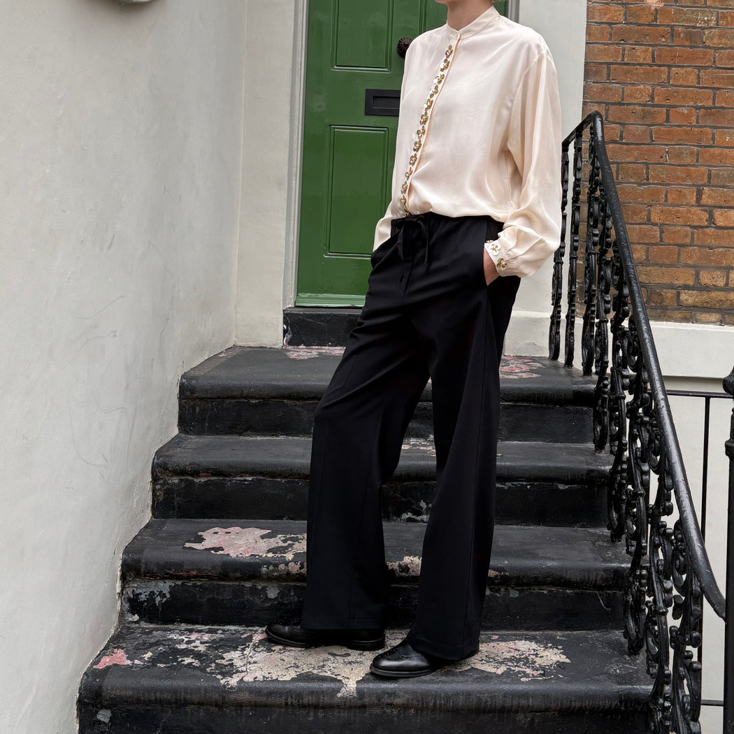 These drawstring trousers in a wool blend come in soft canvas with a subtle fishbone pattern. A soft drape and ultra–comfortable waistband, they can be cinched and gathered as you please, allowing you to personalise the fit.