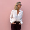 The Druyat shirt is an essential part of the women's wardrobe, an elegant piece that can be worn with all your looks. It has long sleeves and a classic shirt collar. It is a slightly oversized and relaxed fit with a button closure except at the neck to accentuate the neckline.