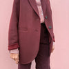 A winter staple - this boyish, maroon, slightly oversized jacket is perfect alternative to your winter coat. It has long sleeves and a tailor collar, with two button fastening and roomy pockets. Model wears a size 34.