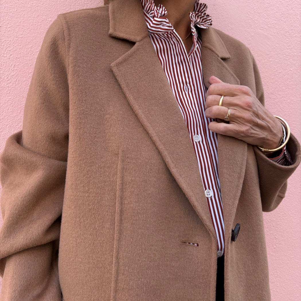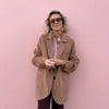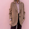 A winter staple - this boyish, soft grey, slightly oversized jacket is perfect alternative to your winter coat. It has long sleeves and a tailor collar, with two button fastening and pockets.