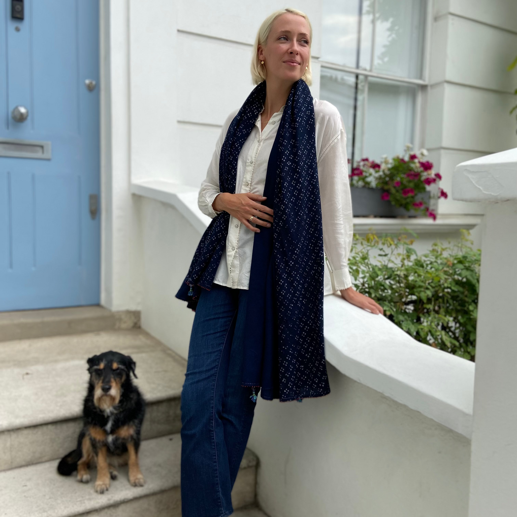 Pero Navy Tiny Dots Wool Scarf