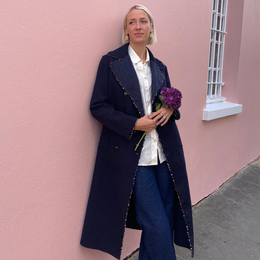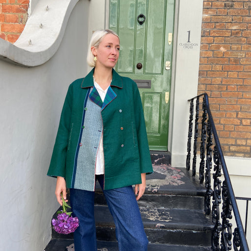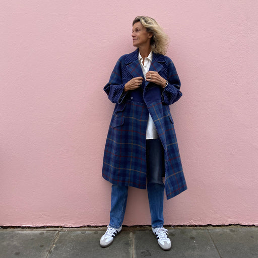 Pero Green and Navy Tartan Dyed Reversible Coat