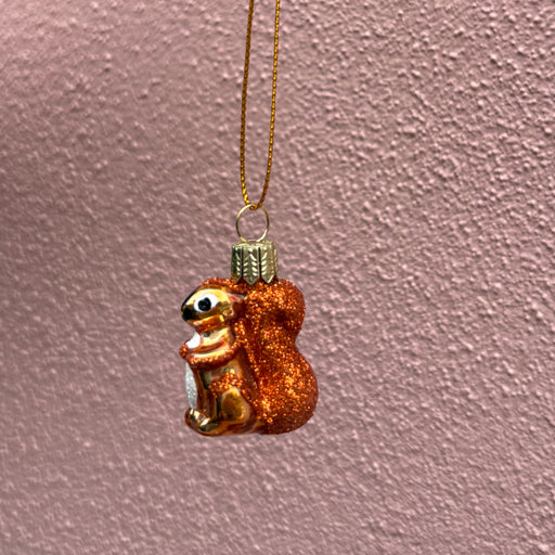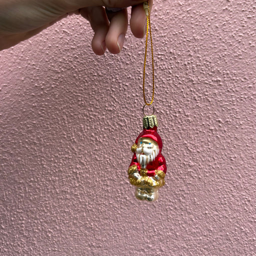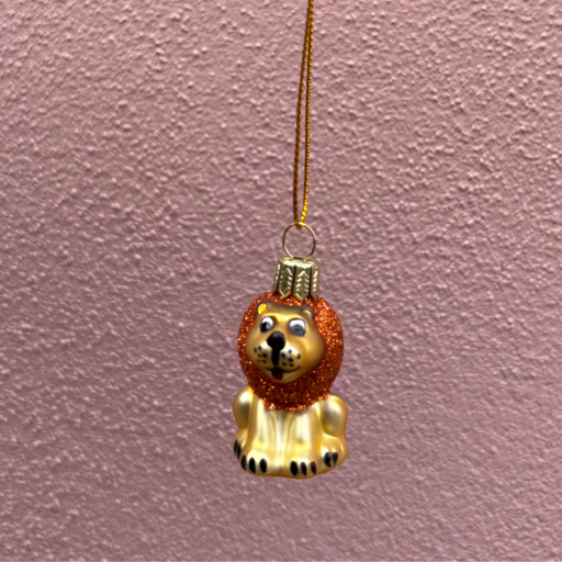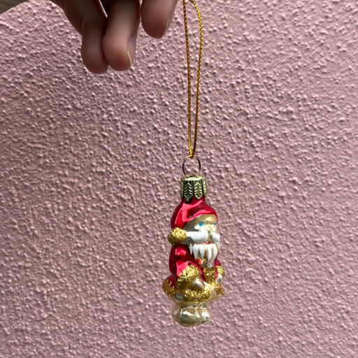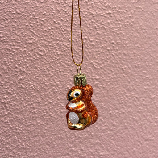 Gold Mini Teddy with Pink Bow Glass Christmas Ornament
