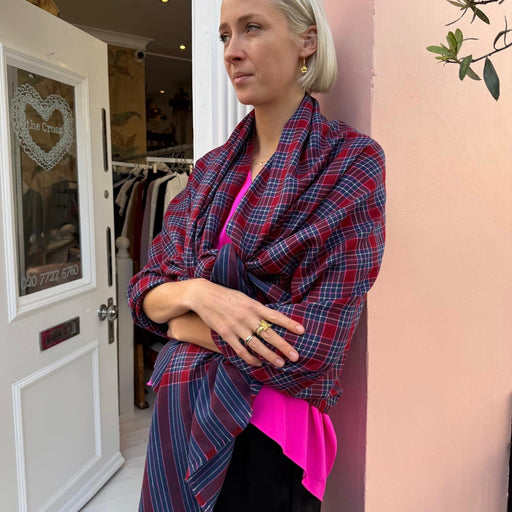 Yaser Shaw Fluoro Pink and Green Check Shawl