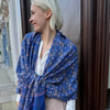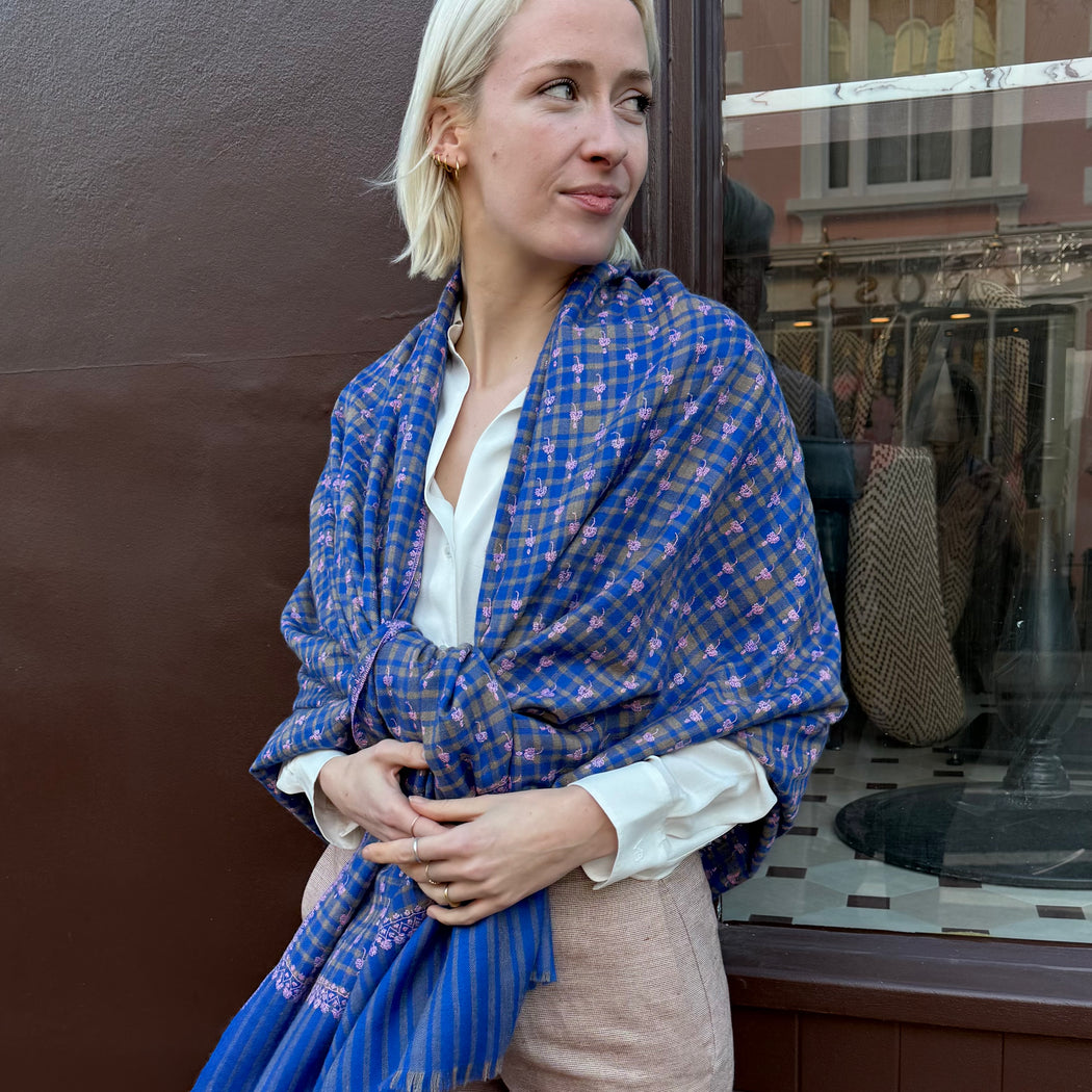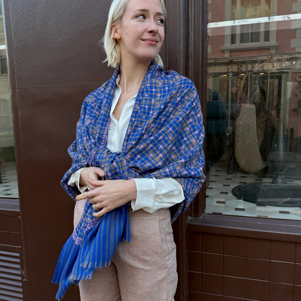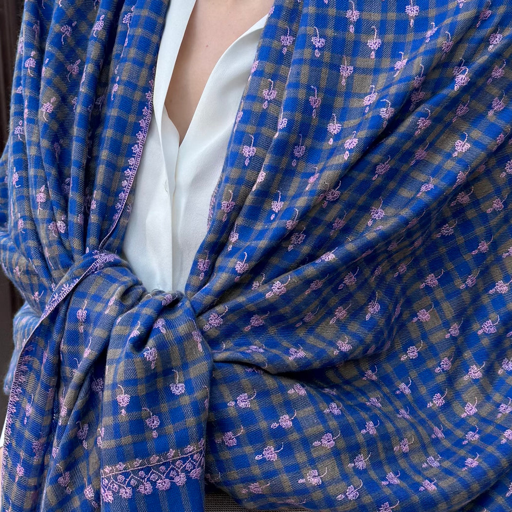 Yaser Shaw Bright Blue and Beige Pink Embroidered Shawl