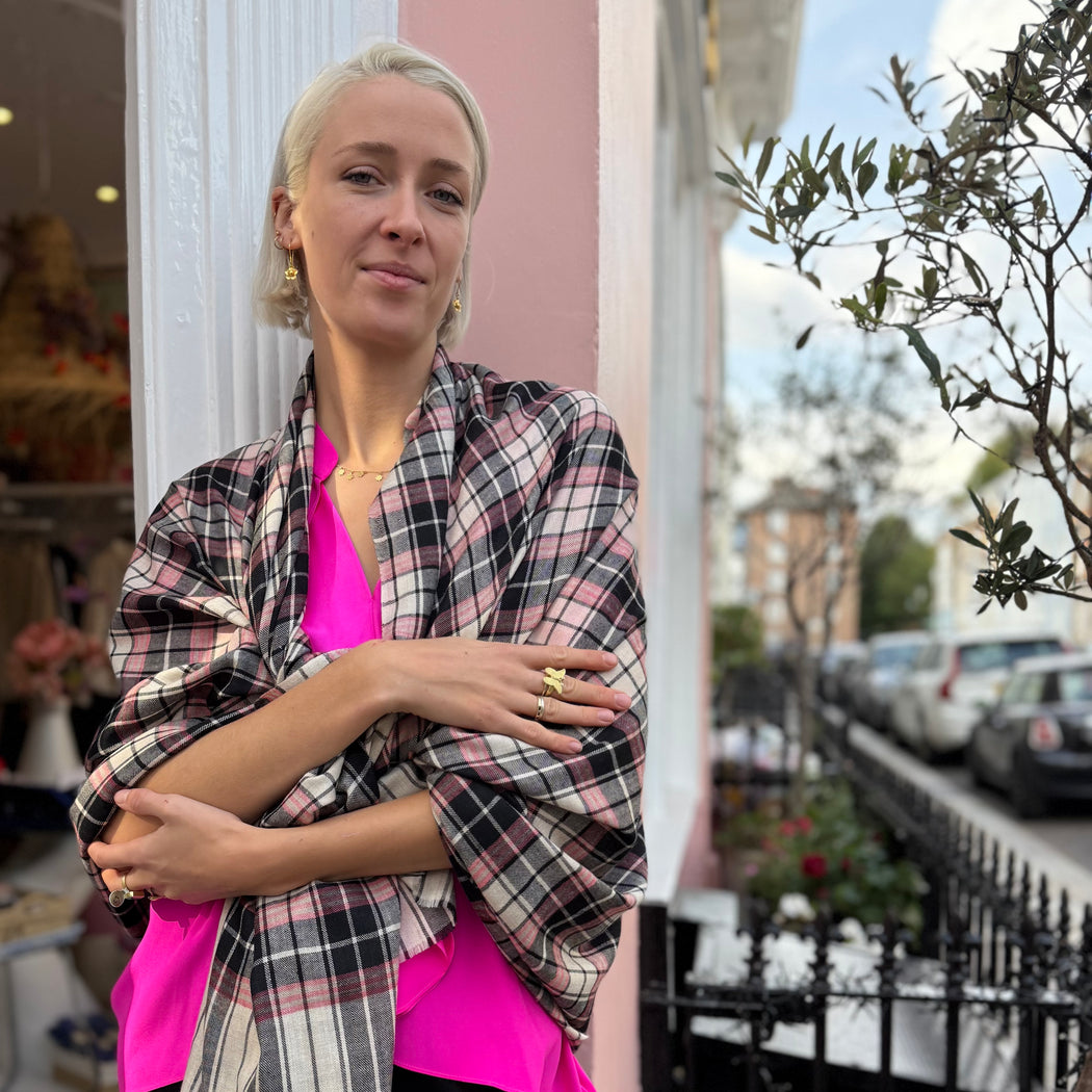 Yaser Shaw Black, Cream and Pink Tartan Shawl