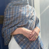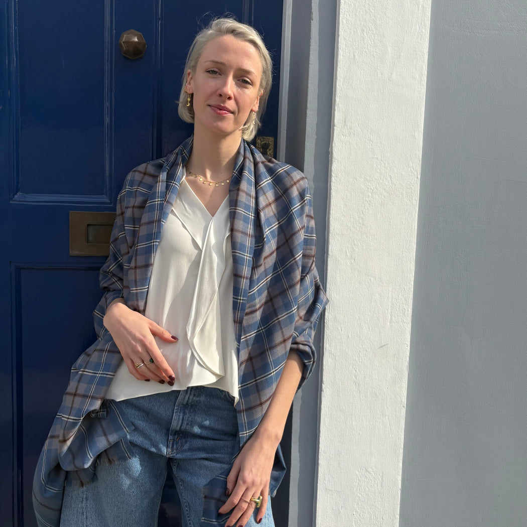 Yaser Shaw Blue Grey Brown Check Shawl