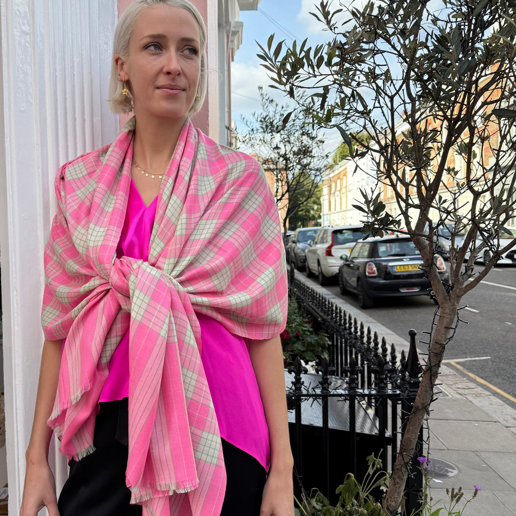 Yaser Shaw Fluoro Pink and Green Check Shawl