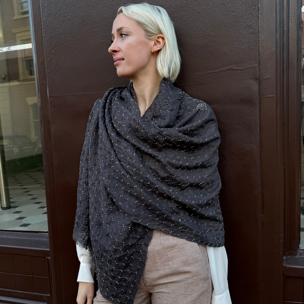 Yaser Shaw produces hand made fabrics that speak volumes about his own traditional heritage yet remain in line with his clear and decisive vision. Drawing inspiration from numerous and extensive travels, he manages to embed his creative Kashmiri upbringing with an extraordinary sensibility and an astonishing amount of