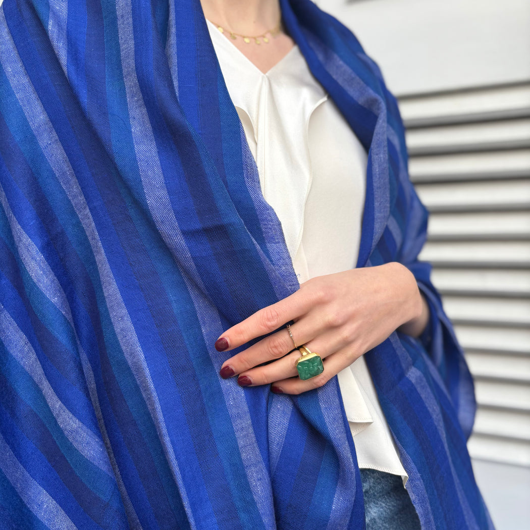 Yaser Shaw Indigo Blues Stripe Shawl