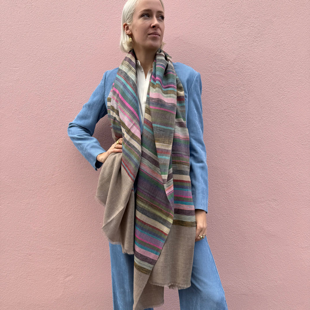 Yaser Shaw Multi Stripe Organic Brown Shawl