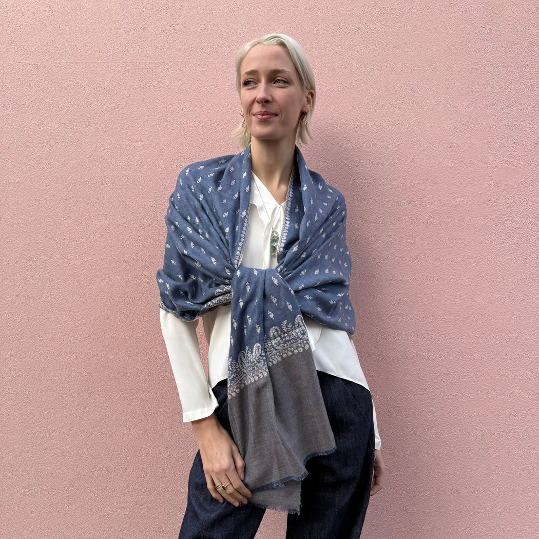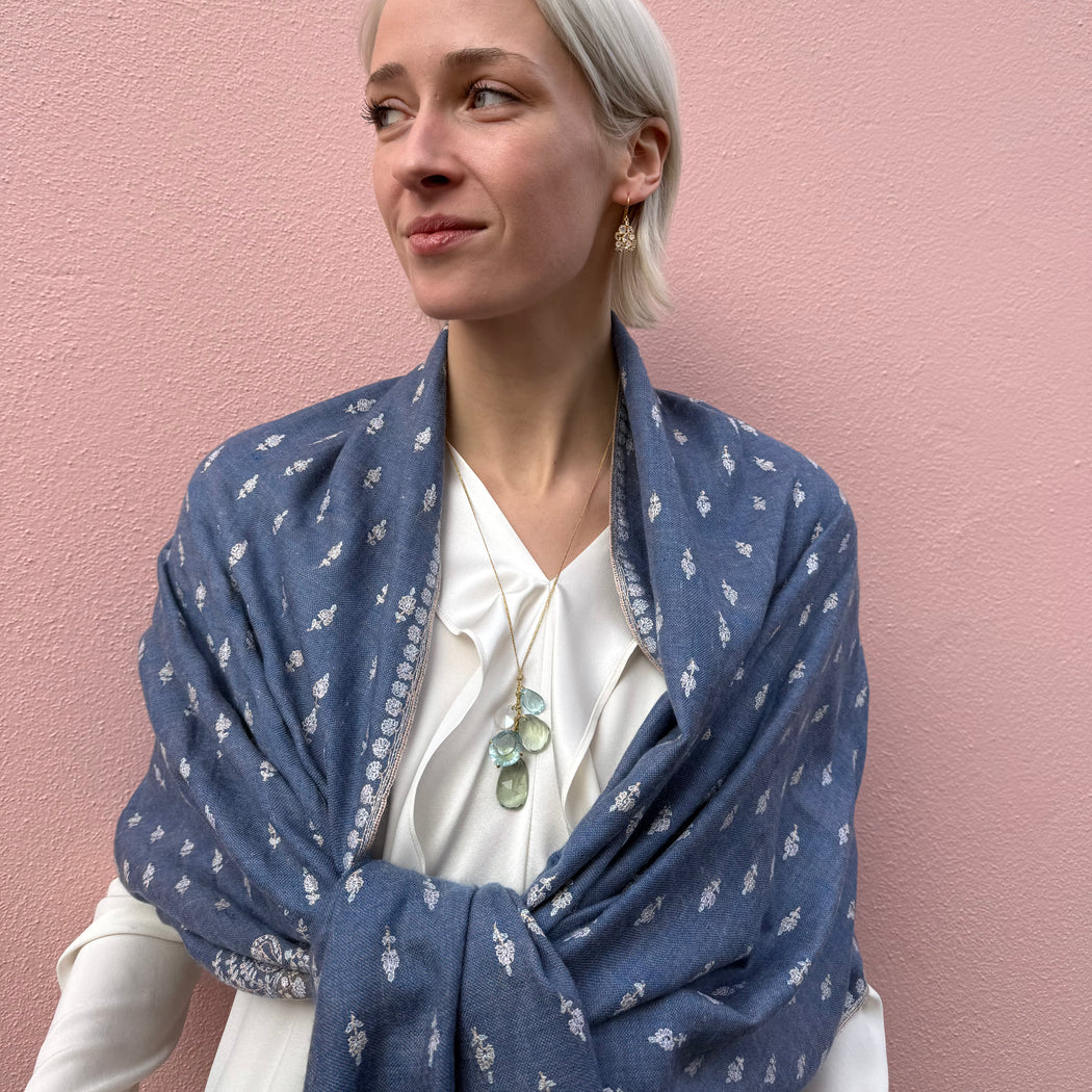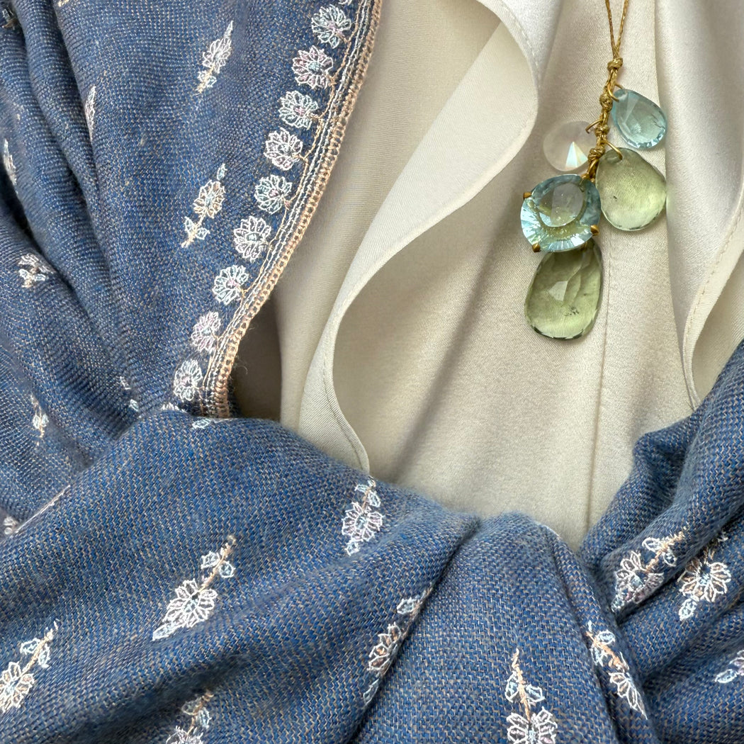 Yaser Shaw Blue with Mini Bouquet Embroidered Shawl