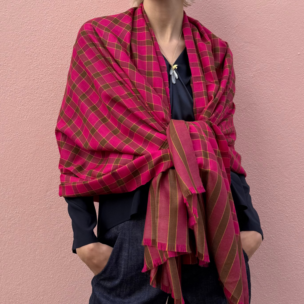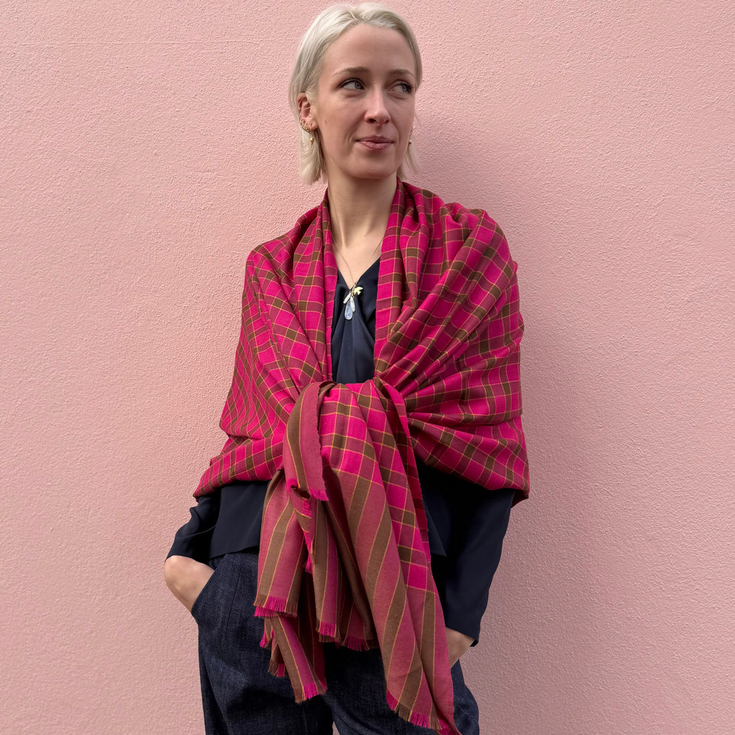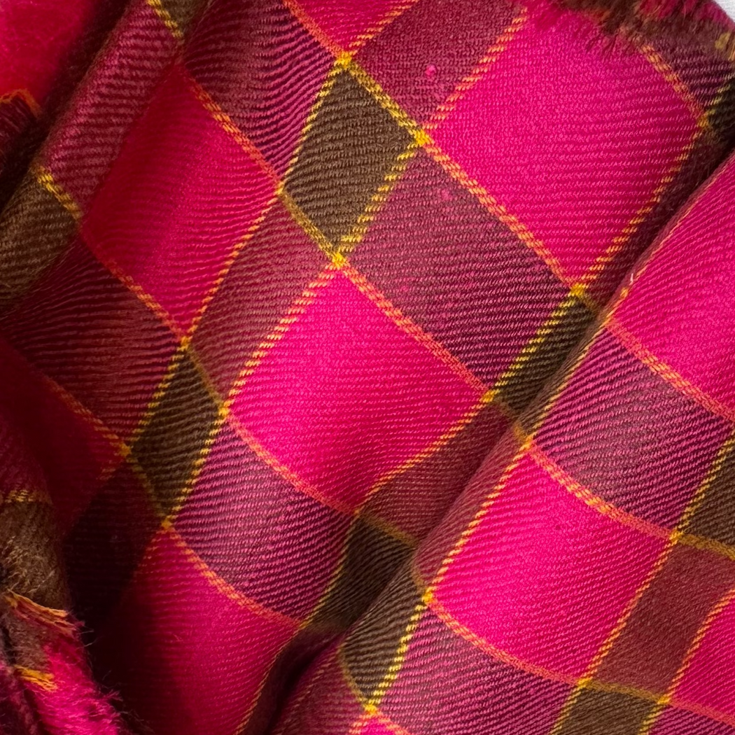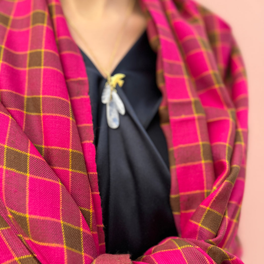 Yaser Shaw Fuchsia, Brown and Yellow Check Shawl