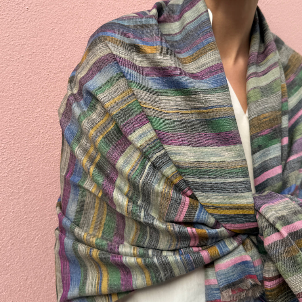 Yaser Shaw produces hand made fabrics that speak volumes about his own traditional heritage yet remain in line with his clear and decisive vision. Drawing inspiration from numerous and extensive travels, he manages to embed his creative Kashmiri upbringing with an extraordinary sensibility and an astonishing amount of
