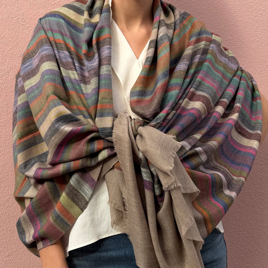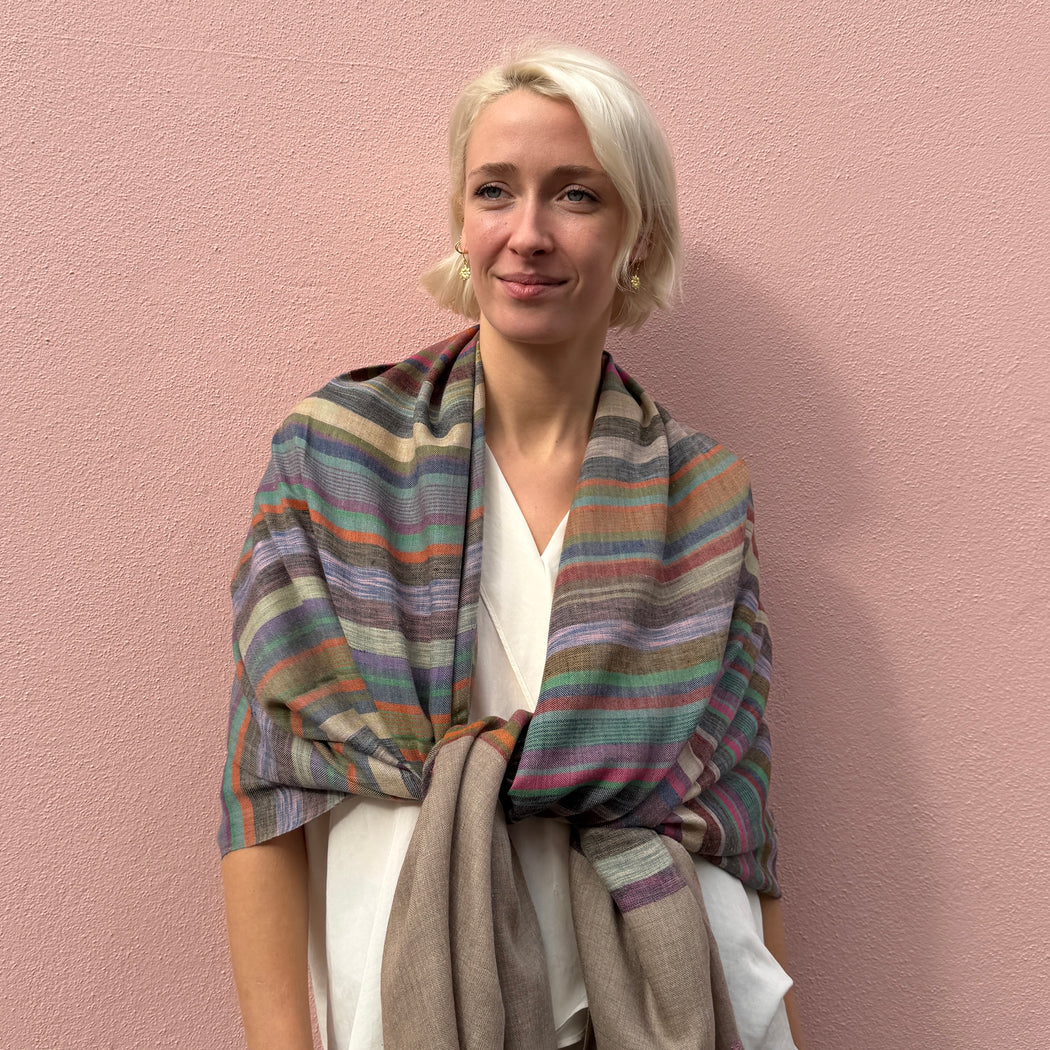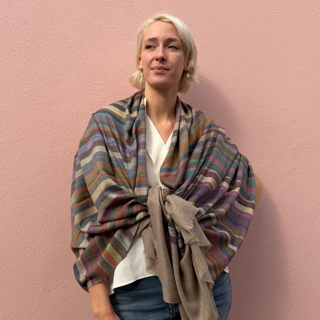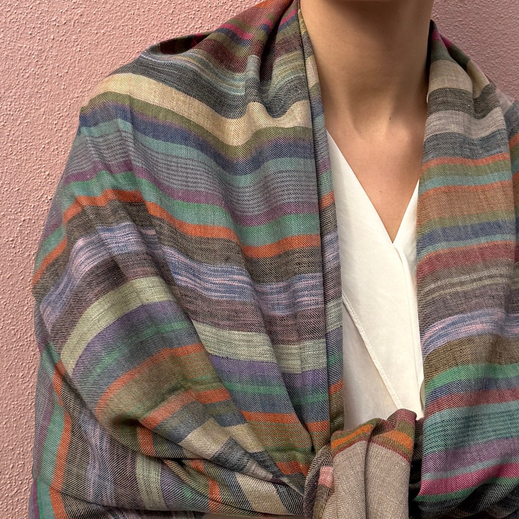 Yaser Shaw produces hand made fabrics that speak volumes about his own traditional heritage yet remain in line with his clear and decisive vision. Drawing inspiration from numerous and extensive travels, he manages to embed his creative Kashmiri upbringing with an extraordinary sensibility and an astonishing amount of