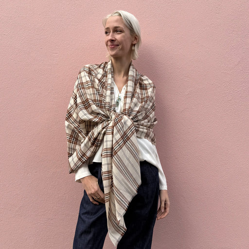 Out of stockYaser Shaw Cream, Brown and Black Check Shawl